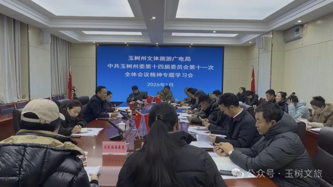 为深入学习领会、全面贯彻落实中共玉树州委十四届十一次全体会议精神,切实把全系统干部职工的思想和行动统一到州委关于十五五开局起步、打造国际生态旅游目的地首选区、建设国家级藏族文化(玉树)生态保护区的决策部署上来,1月13日,玉树州文体旅游广电局系统组织召开专题学习会议。会议由局党组书记、局长昂文才仁主持,局在家领导班子成员、局机关全体干部职工、局属各支部委员参加学习。