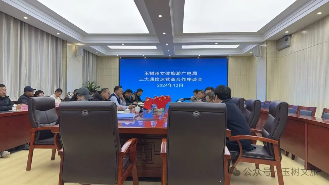 12月27日,玉树州文体旅游广电局召开三大通信运营商合作座谈会。州文体旅游广电局党组书记、局长昂文才仁,与中国电信玉树分公司党委书记、总经理王德生,中国移动玉树分公司党委书记、总经理江小龙,中国联通玉树分公司副总经理任青华齐聚一堂,共商发展大计。局党组班子成员、各科室及局属单位负责人也悉数到场。